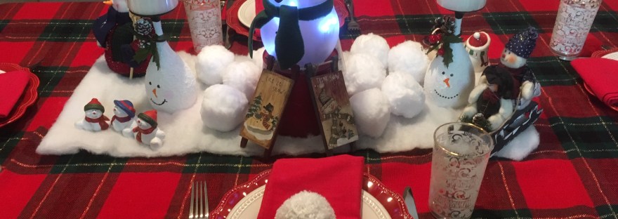 This whimsical Snowman tablescape gives us a fun start to our winter decor.
