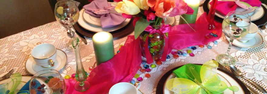 Here is a close up of one of the butterflies. This pretty blue/green butterfly compliments this cheery blue napkin and connects with the beads in the centerpiece.