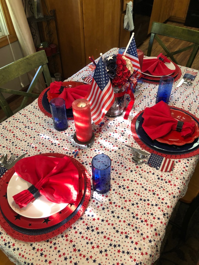 Here is the whole table again from an angle. I love how festive it is! Feel free to share your tablescapes with me and enjoy your 4th of July parties and celebrations!