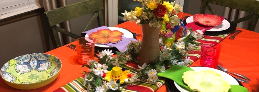 The vibrant colors of Cinco de Mayo brighten this tablescape. It is my first attempt at Cinco de Mayo and I like how it came out.