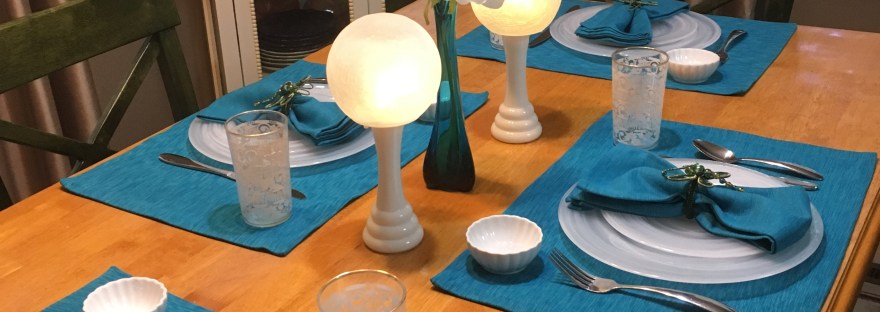 This place setting with daisy napkin ring holders was easy to make. The daisy is a sticker which comes easily off and on the napkin ring holder. The napkins were a deal with the white ones being $.75 each and the yellow ones being $1.75 each! The lemon glasses fit perfectly with the theme and the yellow and white plates kept everything light and bright!